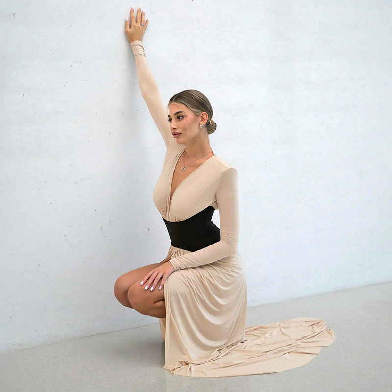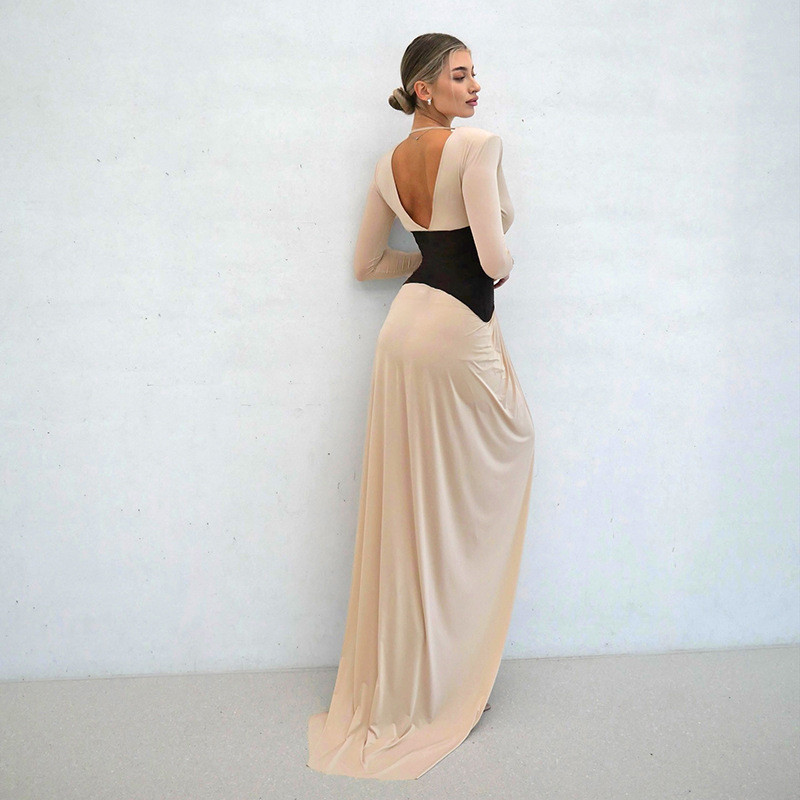 Contrast Patchwork High Slit Dress
